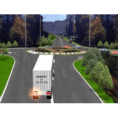 ప్ర. మీరు భారీ సరుకుల రవాణా వాహనం వెనక వెళ్తున్నారు. ముందున్న వాహనం ఎడమకు తిరుగుతున్నట్లు సిగ్నల్ ఇచ్చి కుడికి తిరిగితే ఏం చేస్తారు?